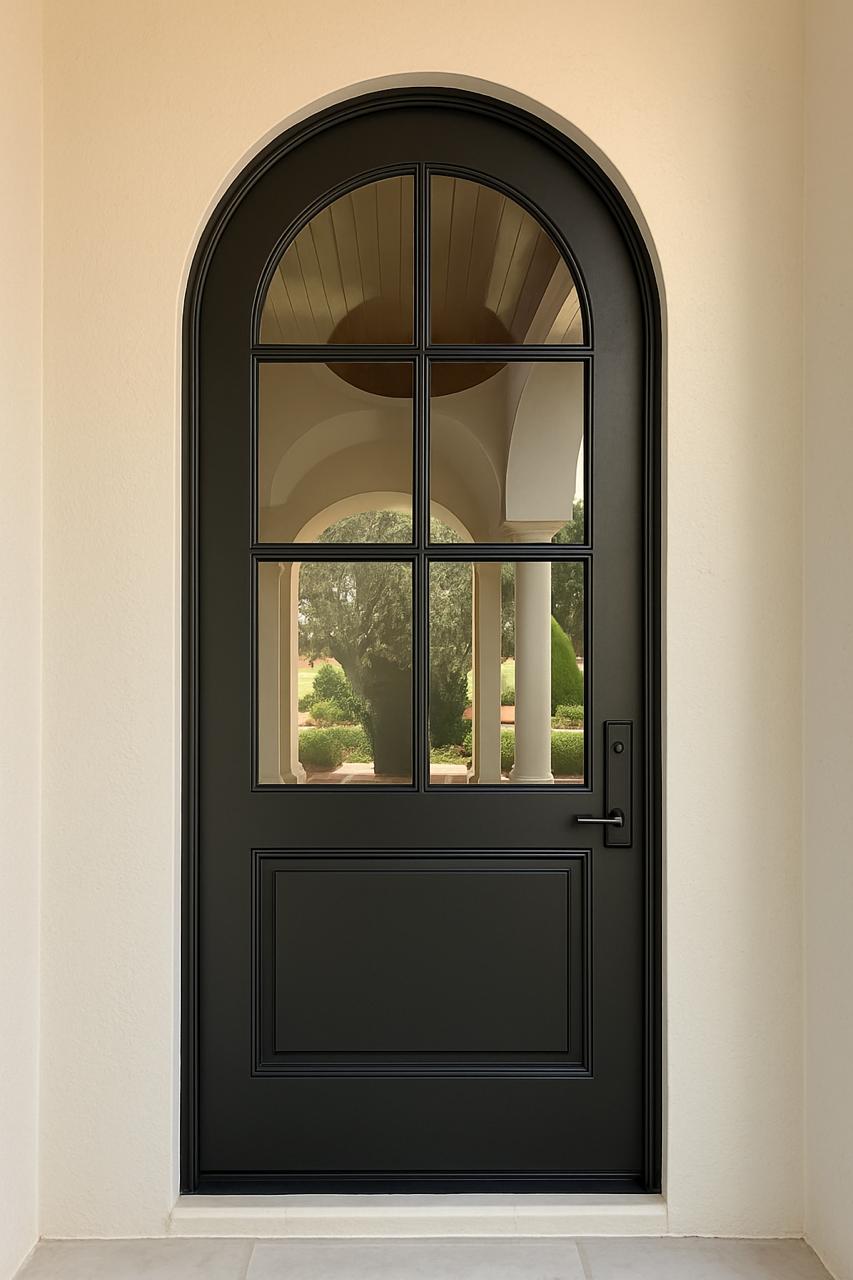 Introducing the Francesca Single Arched door, where French design meets timeless elegance. Crafted with meticulous attention to detail, this door features a sophisticated blend of wood craftsmanship and decorative glass accents. The central glass panel, delicately adorned with intricate patterns, not only adds a touch of refinement but also allows natural light to grace your interior.