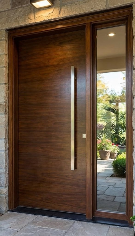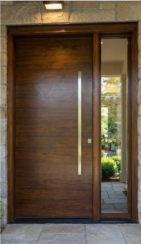 Accompanying the door is a complementary sidelite that enhances the overall design by allowing natural light to flood into the space while maintaining privacy. The sidelite, crafted with the same attention to detail and premium materials, features a matching finish that seamlessly integrates with the door, creating a cohesive and stylish entryway.