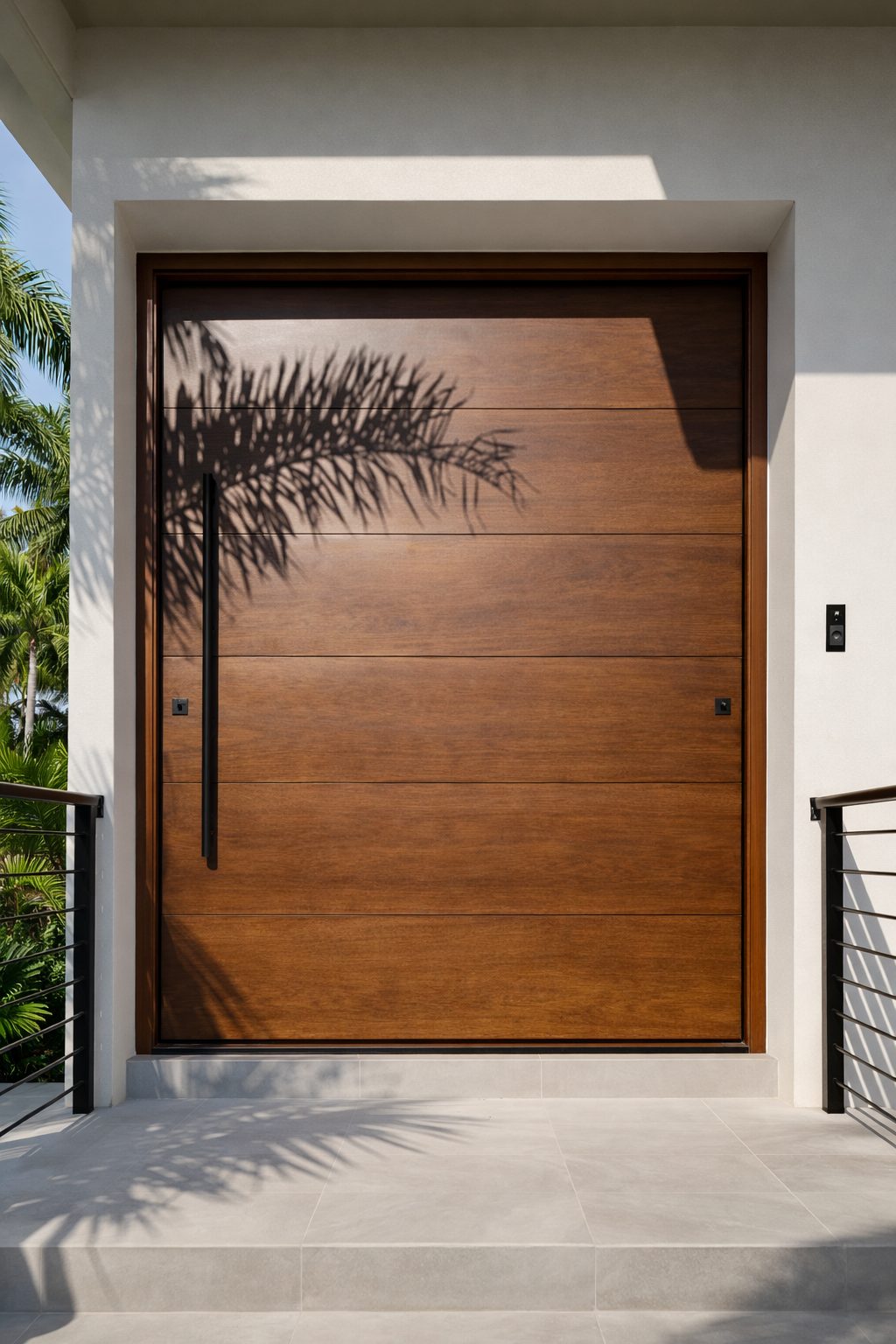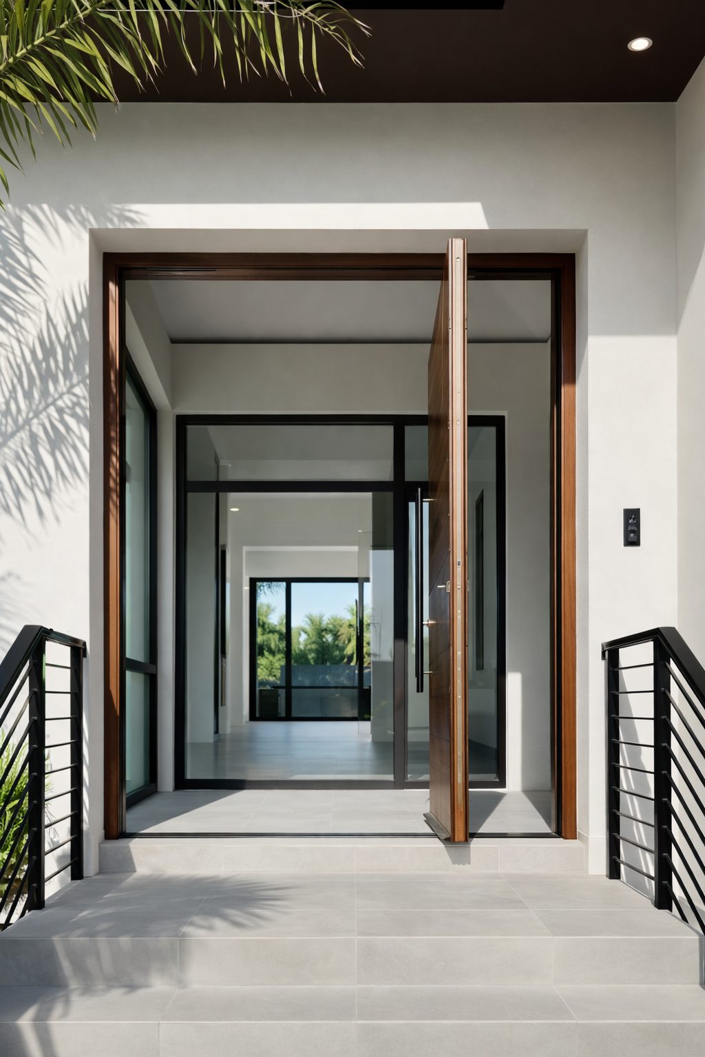 This door is impact-rated, making it a secure and stylish choice for homes in hurricane-prone areas. The clean lines and sleek black handle further accentuate the modern design.